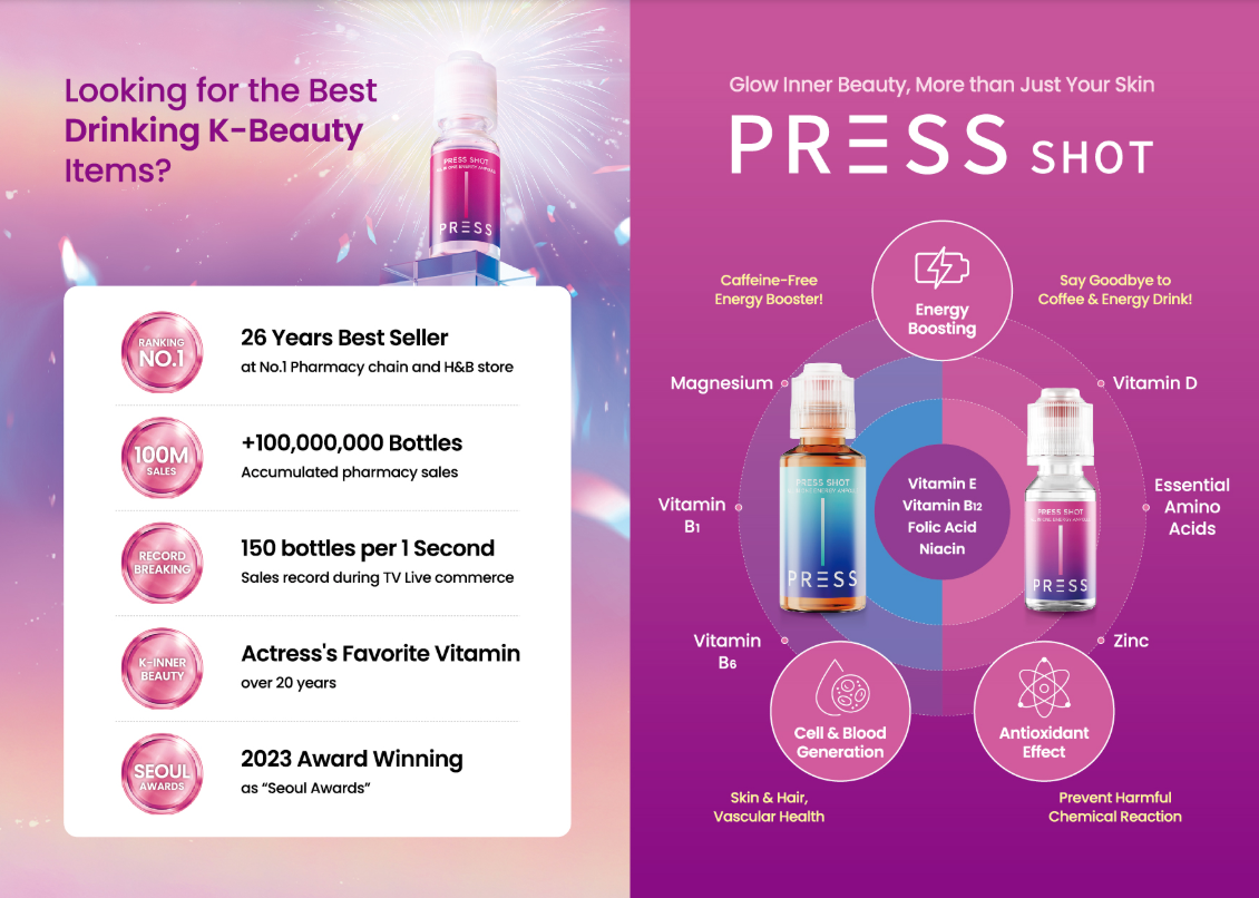 ✨Record Breaking! : PRESS SHOT holds a remarkable sales record, with 150 bottles sold per second and over 60 million bottles sold cumulatively. (OTC v.)
