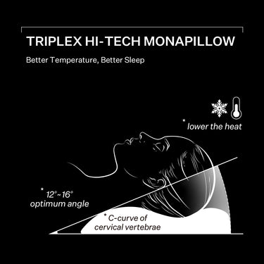 精密かつ革新的に作られたモナピローは、理想的な角度 (12°~16°) を維持して首をサポートします。