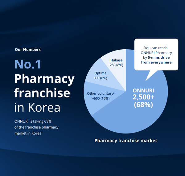 ONNURI は韓国の薬局フランチャイズ市場で 68% のシェアを占め、国内でNo.1 の薬局チェーンとなっています。