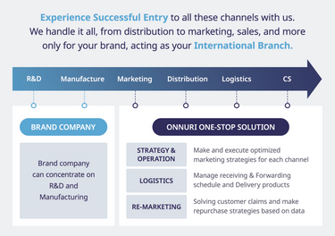 ONNURI STORE は、韓国内のあらゆる業務プロセスをワンストップで管理します。韓国市場における専門知識とノウハウを活用し、さまざまなマーケティングおよび販売サポートを通じてグローバルブランドを急速に成長させます。