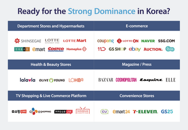 当社のパートナーは、オンラインからオフラインの主要な販売チャネルまで韓国市場にアクセスできるため、最大限の可視性と販売可能性を確保できます。